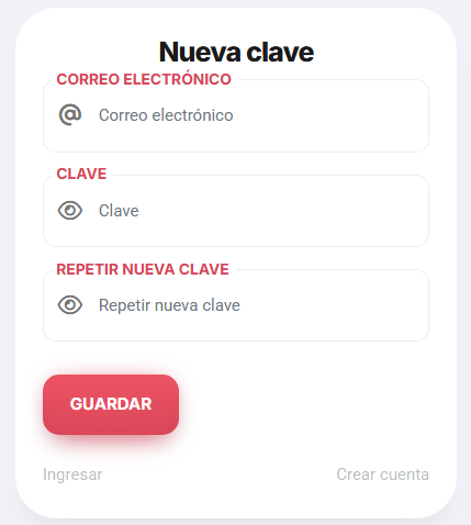 Entra al link que te llevara de nuevo a la aplicación y completa los datos indicados para crear una clave nueva.
