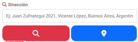 - Dirección: Busca la dirección en la barra de búsqueda, no es necesario que sea la dirección exacta. También puedes presionar el boton azul con el pin y se completara con tu ubicación real si das la autorización en tu dispositivo.