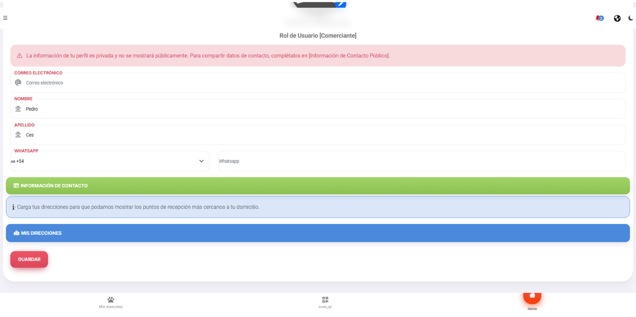 Guardar una dirección es importante para que la aplicación pueda enviarte notificaciones relacionadas con tu zona. Esto incluye avisos sobre mascotas perdidas cercanas, puntos seguros en pet shops o veterinarias, ofertas y otras novedades dentro de la comunidad.